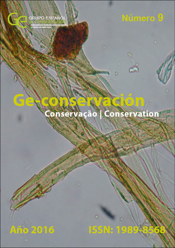- Los autores conservan los derechos de autor y propiedad intelectual, y garantizan a la revista Ge-Conservación y al GEIIC el Copyright© de los derechos de edición y publicación por cualquier medio y soporte. Las obras de dichos autores además se pueden publicar bajo una Creative Commons Attribution License que autoriza ser distribuido gratuitamente, copiado y exhibido por terceros si se muestra en los créditos la autoría y procedencia original en esta revista, y no se puede obtener ningún beneficio comercial por parte de terceros, ni tampoco se pueden realizar obras derivadas.